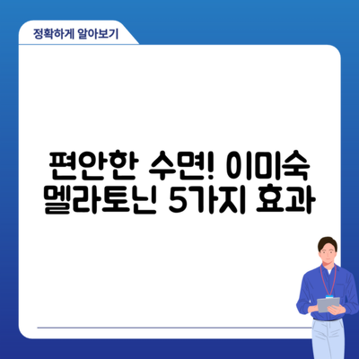 여러분, 수면의 질이 얼마나 중요한지 아시죠? 불면증으로 인해 하루가 피곤하게 시작된다면, 이미숙 멜라토닌이 좋은 해결책이 될 수 있습니다.